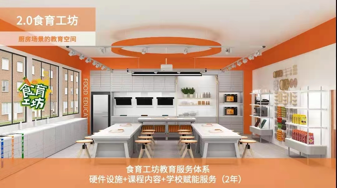 九阳食育工坊致力于支持打造厨房场景的教育空间,以烹饪为教学载体,弘扬传统饮食文化,传递营养健康知识、培养良好的饮食习惯,以及用餐礼仪、协同合作、创新思考、审美等能力的培养。主要是为学校提供食育工坊空间装修设计指导、硬件设施捐赠、课程内容、学校赋能等支持,并以两年为一个周期,进行软硬件的升级服务。