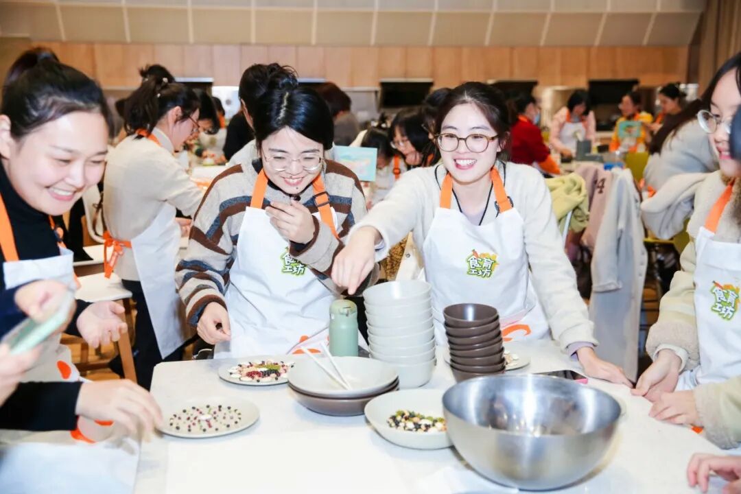 在为期两天的食育实践活动课程中,学员们分为两组,节气组的学员们亲身体验了节气如何与食材相结合,亲手利用春夏秋冬不同的当季蔬菜制作特色美食。从五彩缤纷的食物彩虹中体会其背后蕴藏的营养道理,在老师的带领下试着运用色彩和营养素来搭建“每天吃掉一条彩虹”的营养原则,并且以碗盘为画布,以食物为颜料,以丰富的想象力作为画笔绘制漂亮的健康营养笑脸。学员们在实践体验课程中了解到,日常生活中经常做的发面食物可以给孩子们带来道德、科学、艺术、劳动、体育与健康等多种学科知识应用,这种跨学科的体验式教育帮助学生实现全面发展。