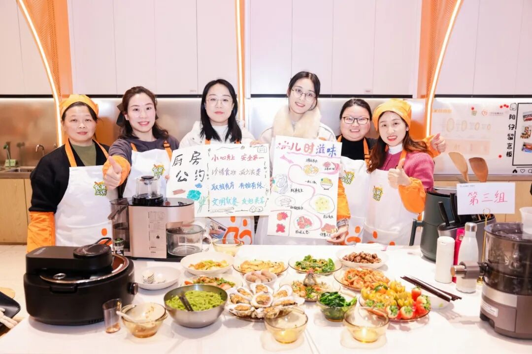 太空食育工坊的学员们则体验了怎样把我们营养丰富健全的家常菜变成太空中宇航员可以吃的食物。学员们纷纷感叹宇航员生活的不易,在体验课程中达到了教育的目的。实践课中学员们一展想象力和厨艺,用九阳的六种不同类型的电器排兵布阵,分工合作,有条不紊地根据学习的营养知识搭配组合,制作的菜品也是灵感不断,花样百出。在厨房公约和用餐礼仪的约束下,大家也积极维护厨房的干净和整洁,做到了知行合一。体验过后,学员们纷纷表示自己的实践可以转化为之后教学过程中的经验,给更多孩子带来知识满满又乐趣横生的食育课程,食育的理念也在这个过程中渗入生活的点点滴滴。